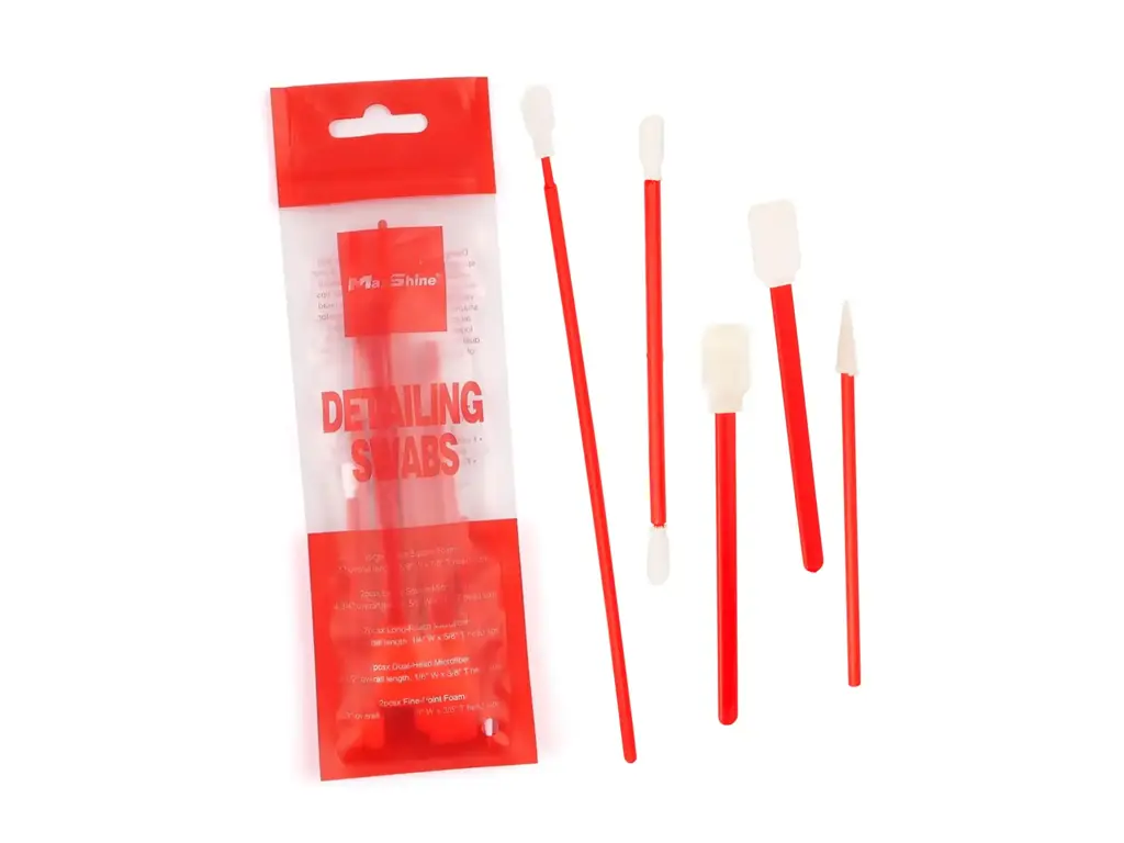 Öt különböző típusú, mikroszálas vagy habszivacsból készült részletező pálca közül választhat. A különböző formák és méretek lehetővé teszik az autók minden apró zugának és bonyolult alakzatának, például az aljzatoknak, a műszerfal burkolatának, a hangszóróknak, a légkondicionáló szellőzőnyílásainak, valamint az autófeliratok külső részeinek stb. tisztítását .
