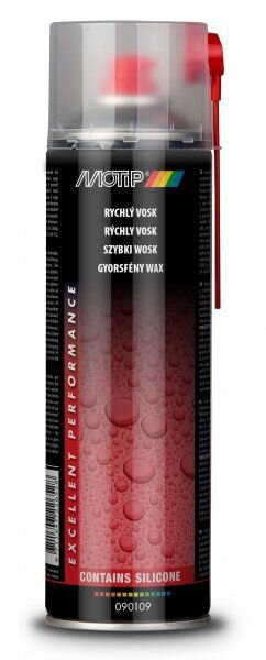 Trvalý lesk a snadné použití, to je Motip 090109D Rychlý vosk ve spreji. Lze jej aplikovat na lakované, plastové i pochromované díly - i na velké plochy. Odpuzuje vodu i nečistoty a je antistatický, pH neutrální a obsahuje silikon. Pomáhá ošetřeným plochám odpuzovat špínu a chrání před povětrnostními vlivy. Nemá leštící účinky.