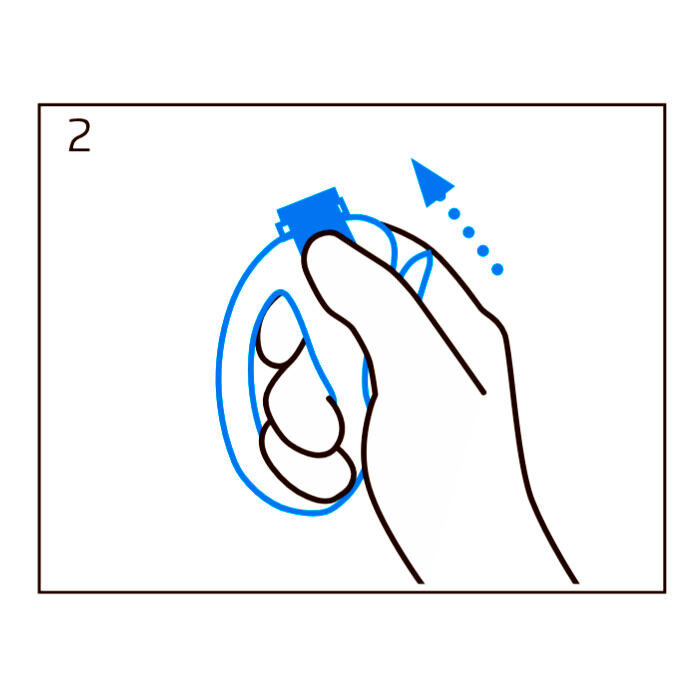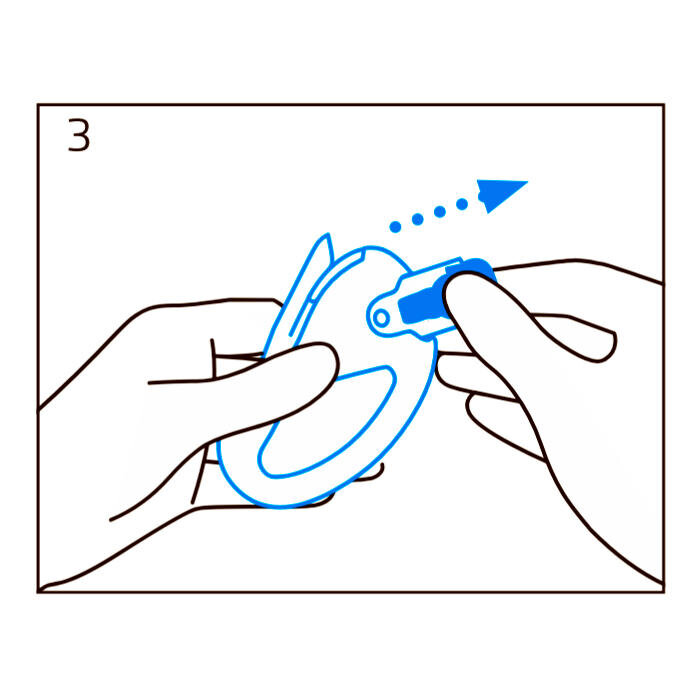 Výměna čepele: Stiskněte palcem tlačítko pro výměnu čepele a čepel vysuňte (obr. 2). Otočte nůž a vyjměte nosič čepele. Čepel obraťte, nebo vyměňte (obr. 3). Dbejte na to, abyste čepel opět nasadili přesně do dané zarážky. Pozor: Nikdy se nedotýkejte ostří čepele. Zatlačte nosič čepele s čepelí podél vodicích hran zpět do rukojeti, dokud nezapadne na své místo.