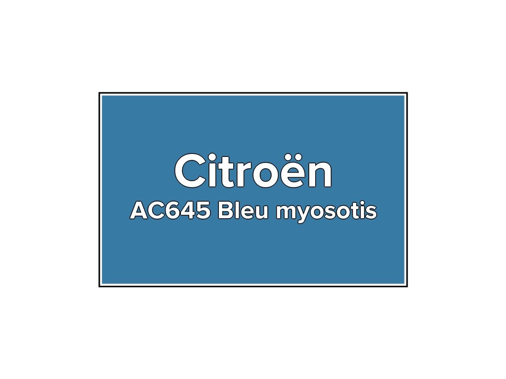 Přečíst článekModrá barva Citroen AC645 Bleu Myosotis ve speciální retušovací lahvičce o objemu 20ml. Barva BLEU MYOSOTIS přesně odpovídá autolaku AC645, používaného na vozech Citroen v letech 1987-2023. Barva na všechny povrchy, snadná aplikace, 100% kr