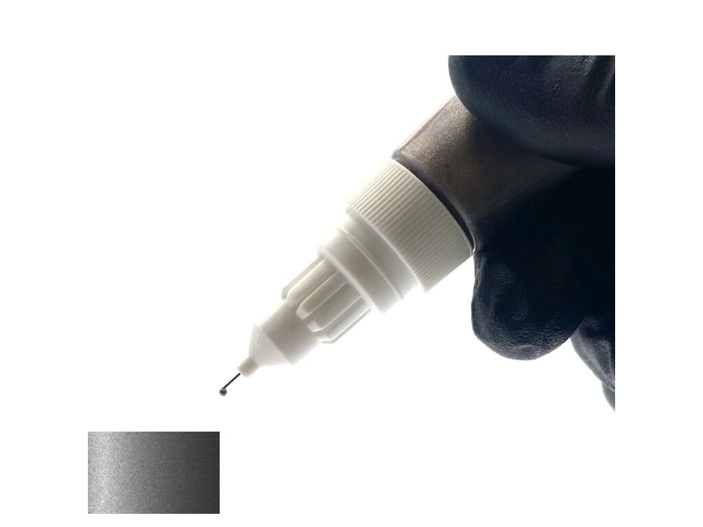 Speciální uzávěr lahvičky vám nabízí dva způsoby aplikace barvy: jehlu (neboli retušovací hrot) a jemný štětec. Nejmenší vady můžete zakápnout pomocí jehly kapkou barvy, větší škrábance můžete přetřít štětečkem. Jehla i štětec jsou integrované přímo do víčka lahvičky.