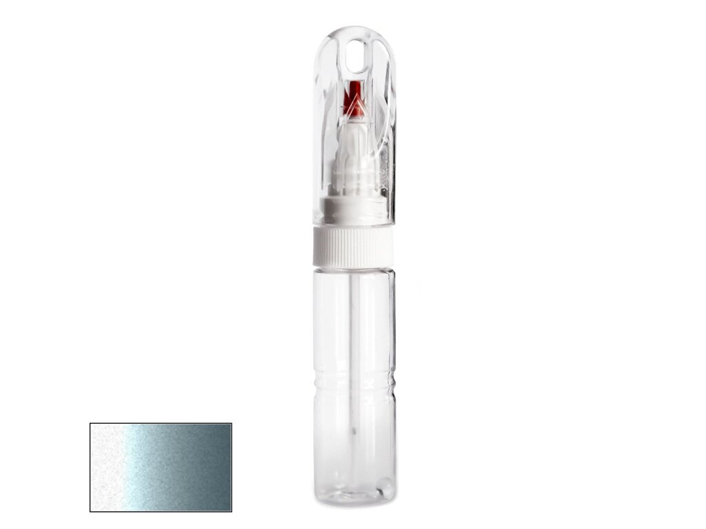 Samotná lahvička má velmi kompaktní velikost, srovnatelnou například s tlustším fixem. Její průhledné tělo obsahuje 20ml autolaku, namíchaného do přesného odstínu podle kódu výrobce vašeho vozu. Díky speciálnímu složení laku je barva po zaschnutí lesklá a není potřeba jí přelakovávat bezbarvým lakem bez ohledu na to, zda jde o klasický odstín nebo metalízu.
