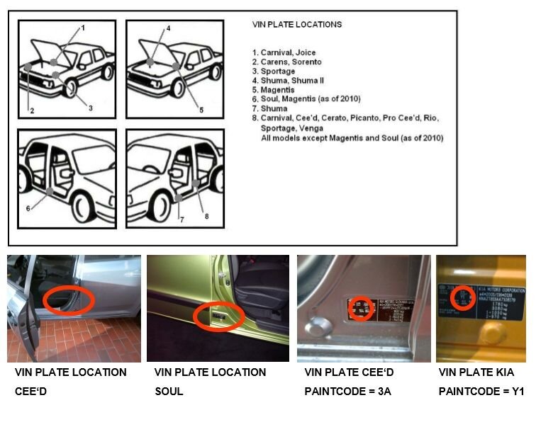 Může se stát, že z nějakého důvodu štítek s barvou chybí, v tom případě stačí, pokud se telefonicky obrátíte na libovolného prodejce nebo autorizovaný servis KIA, kde Vám zdarma podle čísla VIN kód barvy sdělí.
