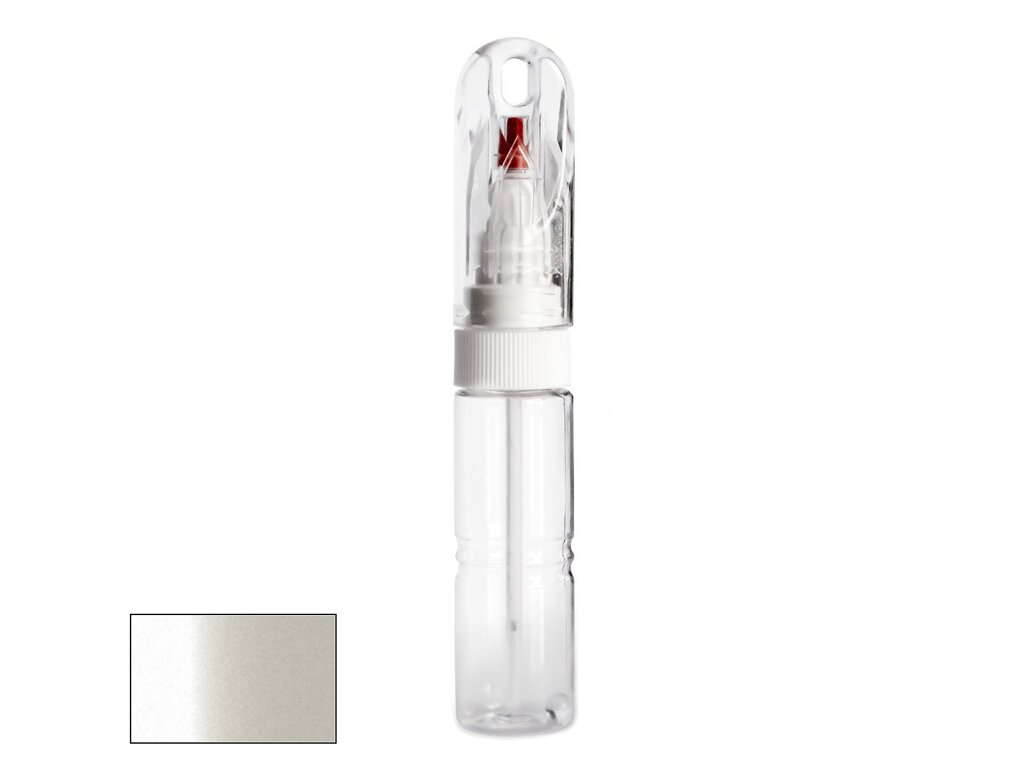 Samotná lahvička má velmi kompaktní velikost, srovnatelnou například s tlustším fixem. Její průhledné tělo obsahuje 20ml autolaku, namíchaného do přesného odstínu podle kódu výrobce vašeho vozu. Díky speciálnímu složení laku je barva po zaschnutí lesklá a není potřeba jí přelakovávat bezbarvým lakem bez ohledu na to, zda jde o klasický odstín nebo metalízu.