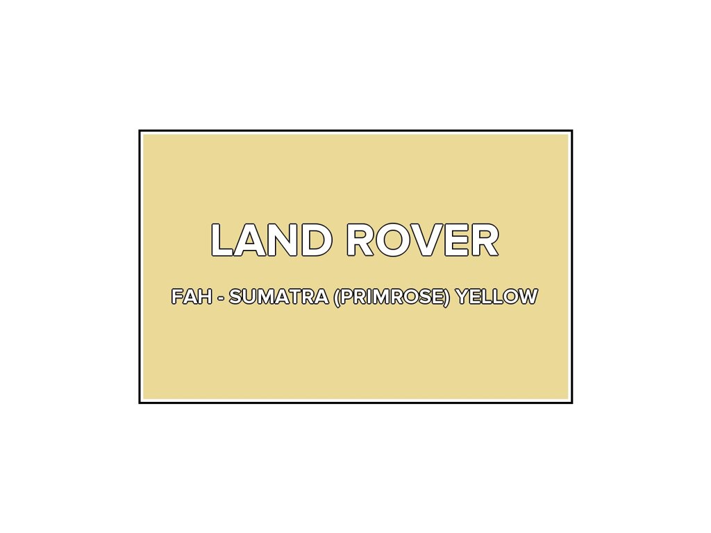 Přečíst článekŽlutá barva Land Rover FAH Sumatra (primrose) Yellow ve speciální retušovací lahvičce o objemu 20ml. Barva SUMATRA (PRIMROSE) YELLOW přesně odpovídá autolaku FAH, používaného na vozech Land Rover v roce 2001. Barva na všechny povrchy, snadn