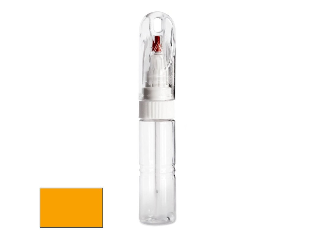 Samotná lahvička má velmi kompaktní velikost, srovnatelnou například s tlustším fixem. Její průhledné tělo obsahuje 20ml autolaku, namíchaného do přesného odstínu podle kódu výrobce vašeho vozu. Díky speciálnímu složení laku je barva po zaschnutí lesklá a není potřeba jí přelakovávat bezbarvým lakem bez ohledu na to, zda jde o klasický odstín nebo metalízu.