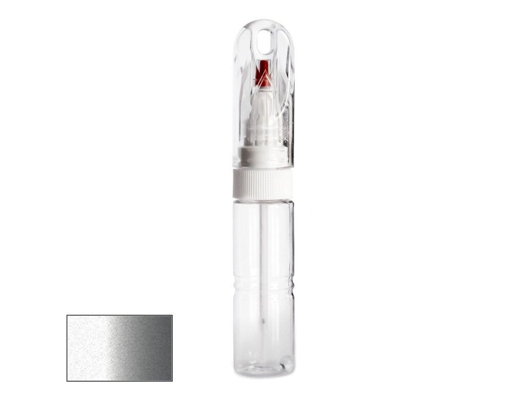 Samotná lahvička má velmi kompaktní velikost, srovnatelnou například s tlustším fixem. Její průhledné tělo obsahuje 20ml autolaku, namíchaného do přesného odstínu podle kódu výrobce vašeho vozu. Díky speciálnímu složení laku je barva po zaschnutí lesklá a není potřeba jí přelakovávat bezbarvým lakem bez ohledu na to, zda jde o klasický odstín nebo metalízu.