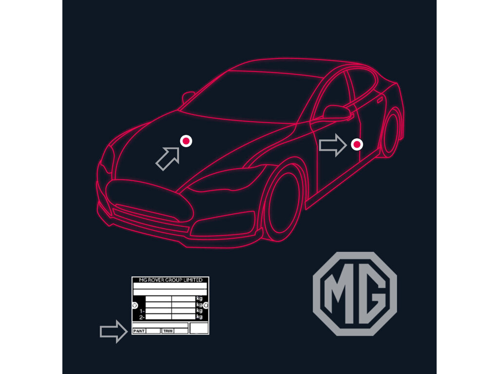 U vozů MG najdete kód barvy v motorovém prostoru nebo na sloupku dveří na štítku.