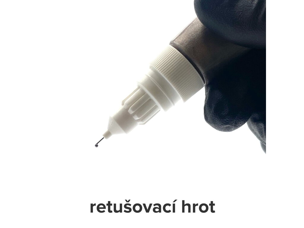 Náš TIP: pokud při opravě laku používáte jehlu retušovacího hrotu, tak může dojít k zasychání barvy v jehle, které pak komplikuje použití opravné lahvičky v budoucnosti. Proto doporučujeme po použití propláchnout hrot jehly nitro ředidlem a při uzavírání lehce zmáčknout plastové tělo lahvičky tak, aby při zavření a uvolnění lahvičky došlo k podtlaku a barva volně nevytékala.