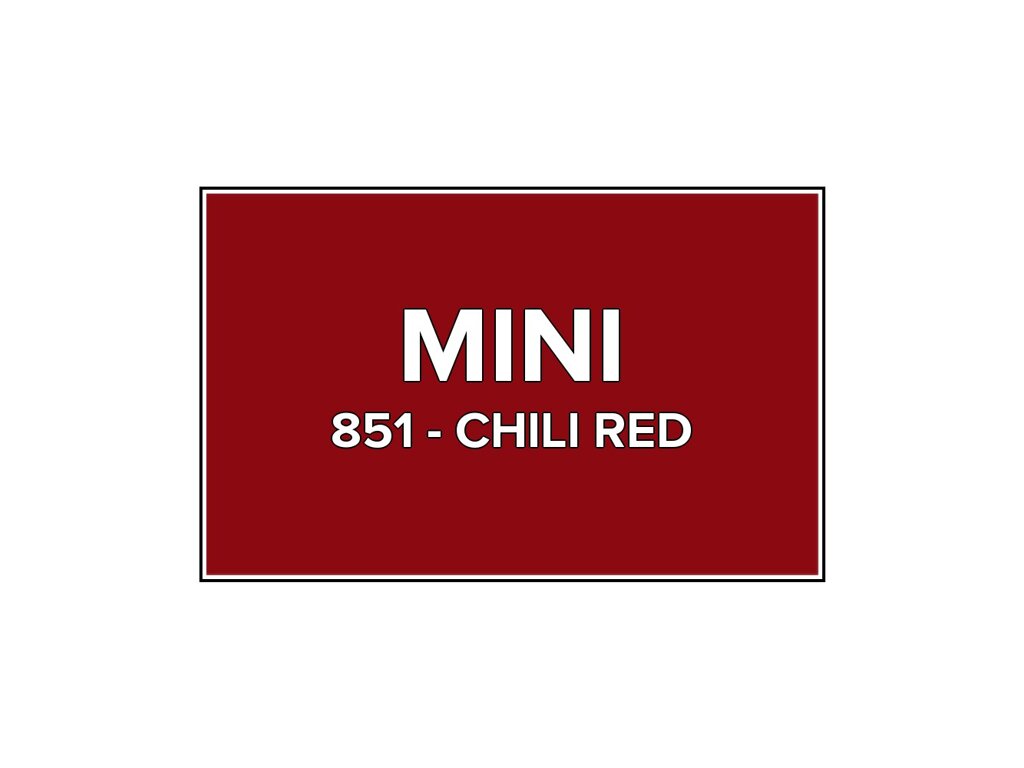 Přečíst článekČervená barva Mini 851 Chili Red ve speciální retušovací lahvičce o objemu 20ml. Barva CHILI RED přesně odpovídá autolaku 851, používaného na vozech Mini v letech 2000-2025. Barva na všechny povrchy, snadná aplikace, 100% krytí.