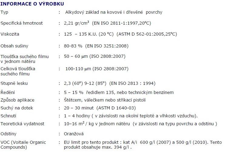 Signální slovo:Nebezpečí.H360Df Může poškodit plod v těle matky. Podezření na poškození reprodukční schopnosti. H302+H332 Zdraví škodlivý při požití nebo při vdechování. H372 Způsobuje poškození orgánů při prodloužené nebo opakované expozic. H304 Při požití a vniknutí do dýchacích cest může způsobit smrt. H410 Vysoce toxický pro vodní organismy, s dlouhodobými účinky. EUH201 Obsahuje olovo. Nemá se používat na povrchy, které mohou okusovat nebo olizovat děti. EUH208 Obsahuje: BIS(2-ETHYLHEXANOÁT) KOBALTNATÝ 2-BUTANONOXIM může vyvolat alergickou reakci. Pouze pro profesionální uživatele. Pokyny pro bezpečné zacházení: P201 Před použitím si obstarejte speciální instrukce. P273 Zabraňte uvolnění do životního prostředí. P280 Používejte ochranné rukavice / oděv a ochranné brýle / obličejový štít. P301+P312 PŘI POŽITÍ: necítíte-li se dobře, volejte TOXIKOLOGICKÉ INFORMAČNÍ STŘEDISKO / lékaře / . . . P304+P340 PŘI VDECHNUTÍ: přeneste osobu na čerstvý vzduch a ponechte ji v poloze usnadňující dýchání. Obsahuje: PEROXID OLOVA TĚŽKÁ FRAKCE NAFTY DESULFUROVANÁ VODÍKEM