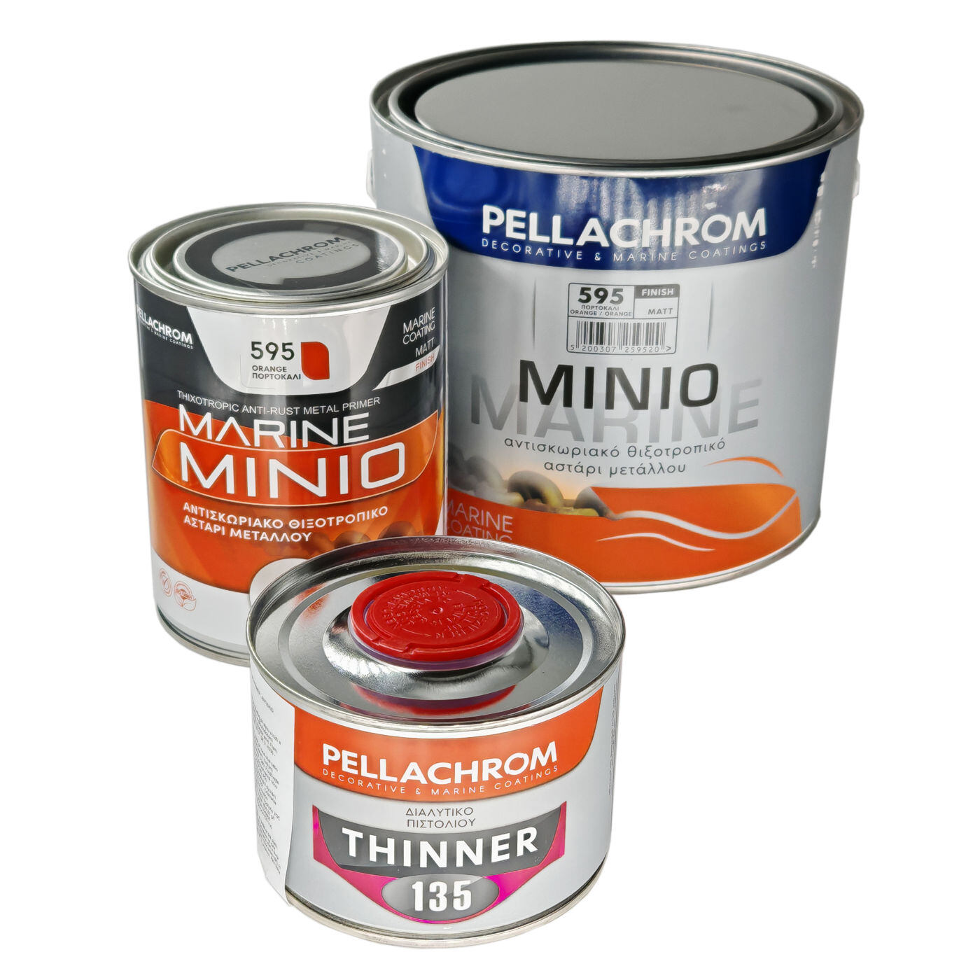 Pellachrom Marine Minio je tixotropní podkladový antikorozní nátěr na bázi kopolymerních pryskyřic, pro vynikající a dlouhotrvající ochranu proti korozi. Díky vysokému obsahu čištěného oxidu olovnatého ("suříku") s antikorozními vlastnostmi poskytuje optimální ochranu proti korozi i pro povrchy vystavené oxidačnímu prostředí a zajišťuje plnou ochranu před oxidací. V kombinaci se speciálním složením tixotropních pryskyřic představuje ideální řešení pro údržbu železných a dřevěných povrchů nad i pod čarou ponoru.