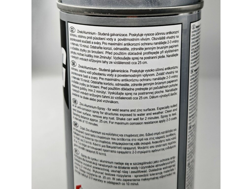 Pro dokonalou ochrannou funkci zinko - alumuniového spreje naneste na povrch 2-3 vrstvy v intervalu 10 minut.