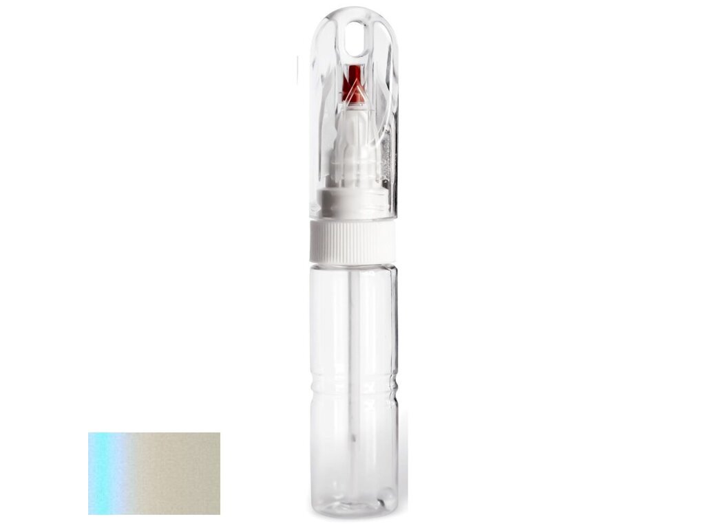 Samotná lahvička má velmi kompaktní velikost, srovnatelnou například s tlustším fixem. Její průhledné tělo obsahuje 20ml autolaku, namíchaného do přesného odstínu podle kódu výrobce vašeho vozu. Díky speciálnímu složení laku je barva po zaschnutí lesklá a není potřeba jí přelakovávat bezbarvým lakem bez ohledu na to, zda jde o klasický odstín nebo metalízu.