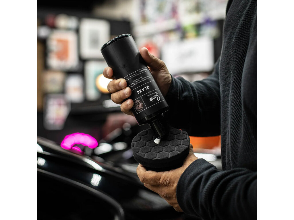Professzionális applikátor, amelyet a karosszéria kézi gyantázására terveztek a részletezés során. A speciálisan kialakított hatszögletű mintával ellátott munkafelület biztosítja a viaszok, tömítőanyagok és polírozószerek tökéletes felvitelét a karosszériára. Az átgondoltan kialakított markolat kényelmesebbé teszi magát a munkát.