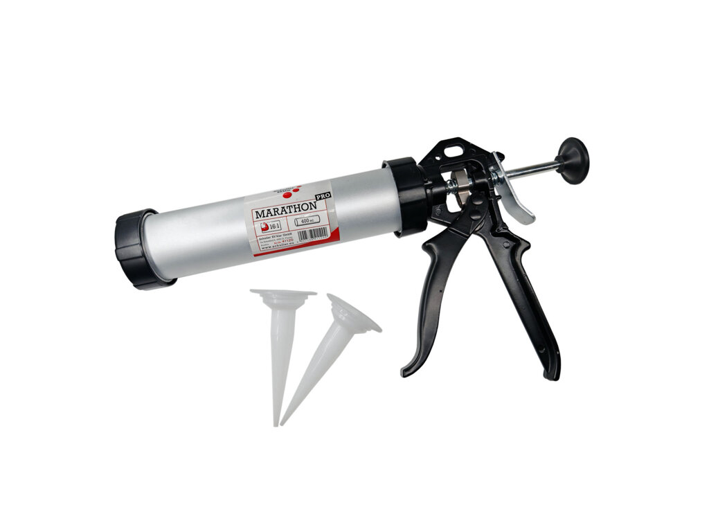 Profesionální vytlačovací pistole na kartuše a "salámy" Marathon PRO. Díky speciálnímu převodu je vytlačování touto pistolí jednodušší, než je běžné.