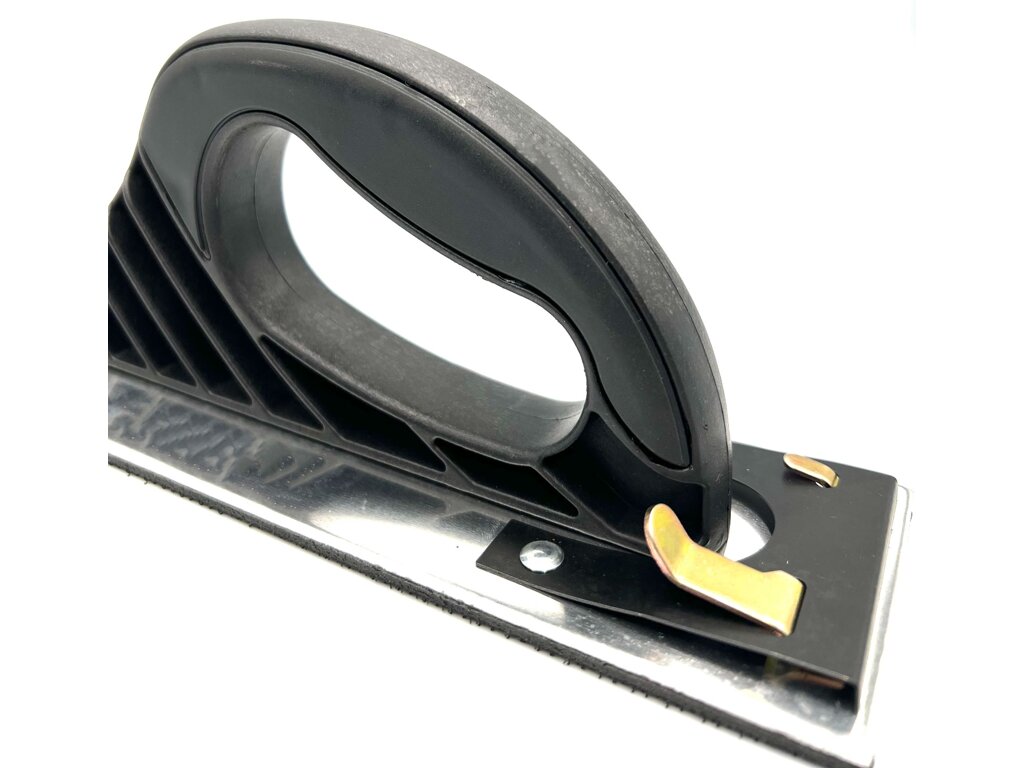 formázott műanyag fogantyúval rendelkezik, amely könnyű és szilárd fogást biztosít, így kényelmes vele dolgozni, maximális erőelosztás és precíz erőátvitel mellett. A puha habszivacs párnázás, valamint a kemény fém hátlap garantálja a csiszolási felület egyenletességét (pl. gitt,...).